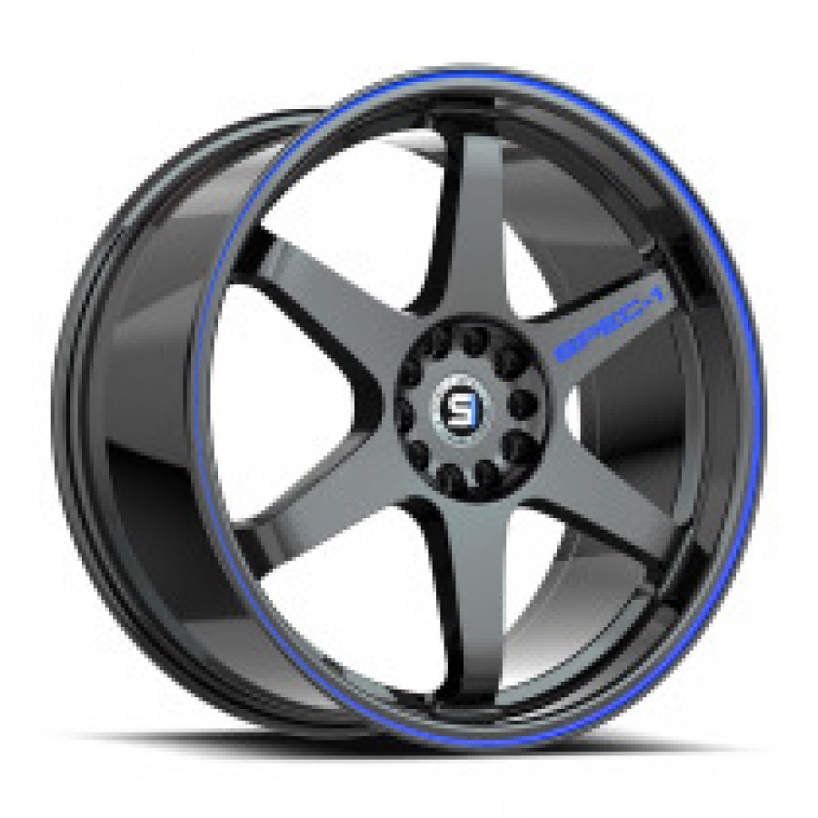 Литые диски Spec-1 SPT-33 Gloss Black AND Blue Line 5x114.3/120 R18 8.5J ET38 CB73.1