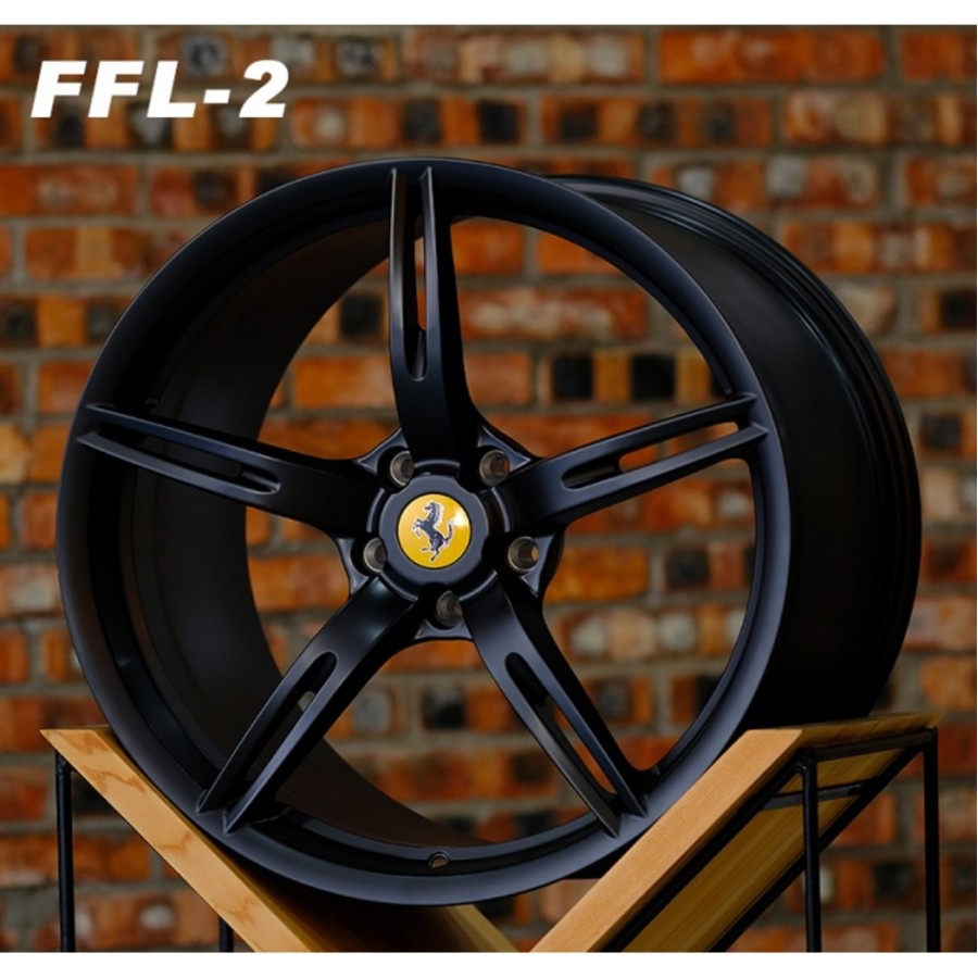 Кованые диски для Ferrari 458 в цвете матовый черый. Комплект разноширокий и может использоватья с заводской центральной заглушкой (ступичный колпачок).